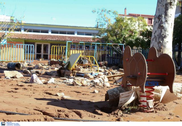 - Στο 1ο Νηπιαγωγείο έχει καταστραφεί ο υλικοτεχνικός εξοπλισμός, καθώς ποσότητες νερού και λάσπης έχουν μπει από τα παράθυρα του κτηρίου.