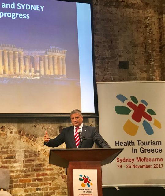 Οι προοπτικές επένδυσης στην Ελλάδα και τα ανταγωνιστικά πλεονεκτήματα της χώρας μας, στον τομέα του τουρισμού υγείας, παρουσιάστηκαν στο πλαίσιο εκδήλωσης που διοργανώθηκε στο Σίδνεϊ της Αυστραλίας, από το Διεθνές Κέντρο Τουρισμού Υγείας και το Παγκόσμιο Ινστιτούτο Ελλήνων Γιατρών, σε συνεργασία με την Ελληνική Λέσχη Σίδνεϊ, υπό την αιγίδα του Ιατρικού Συλλόγου Αθηνών και της Κεντρικής Ένωσης Δήμων Ελλάδος.
