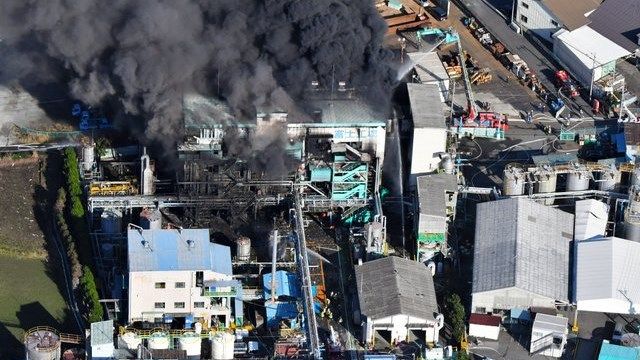 Πλάνα που μεταδίδουν ιαπωνικά τηλεοπτικά δίκτυα εικονίζουν μια στήλη μαύρου καπνού να υψώνεται από το εργοστάσιο της Arakawa Chemical Industries, που κατασκευάζει χημικά προϊόντα για χρήση στη χαρτοβιομηχανία.