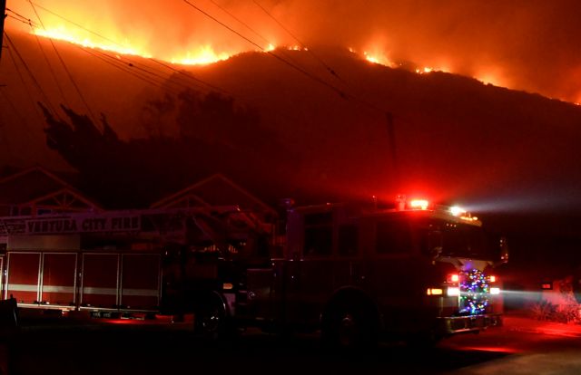 Οι θυελλώδεις άνεμοι που πνέουν στην περιοχή ωθούν τη φωτιά στις πόλεις Σάντα Πόλα και Βεντούρα, όπου ζουν 140.000 άνθρωποι.
