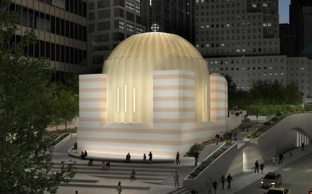 Ο Ναός που βρίσκεται στο σημείο όπου έπεσαν οι δίδυμοι πύργοι αποτελεί μια πολυδάπανη κατασκευή για την οποία ήδη έχουν διατεθεί, σύμφωνα με πληροφορίες, 40 εκατομμύρια ενώ χρειάζονται αλλά 40. Μάλιστα κατασκευάζεται με σχέδια του γνωστού αρχιτέκτονα Καλατραβα.
