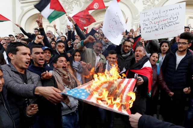 Χιλιάδες Τυνήσιοι διαδήλωσαν την Πέμπτη σε πολλές πόλεις της χώρας διαμαρτυρόμενοι για τις αποφάσεις του αμερικανού προέδρου Ντόναλντ Τραμπ να αναγνωρίσει την Ιερουσαλήμ ως πρωτεύουσα του Ισραήλ και να μεταφέρει την αμερικανική πρεσβεία εκεί.