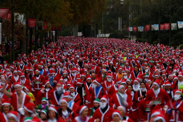 Θυσιάζοντας την άνεση, αλλά για καλό σκοπό, οι Μαδριλένοι φόρεσαν την κόκκινη στολή, τον σκούφο και τη λευκή γενειάδα του Άγιου Βασίλη και έτρεξαν στον αγώνα των 5 χιλιομέτρων, κατά μήκος της περίφημης λεωφόρου Πασέο δε λα Καστεγιάνα.