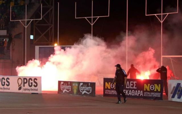 Ο απολογισμός των επεισοδίων, τα οποία ξέσπασαν μετά τη ρίψη φωτοβολίδων από οπαδούς του ΑΠΟΕΛ, ήταν μάχες σώμα με σώμα εντός και εκτός γηπέδου, πετροβολισμοί, δύο τραυματισμοί, μία σύλληψη και αρκετές ζημιές.