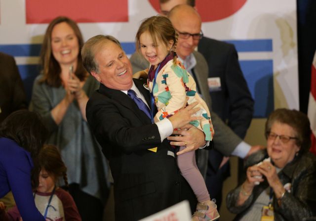 Στην Πολιτεία της Αλαμπάμας είχε να εκλεγεί δημοκρατικός γερουσιαστής από το 1992. «Ευχαριστώ την Αλαμπάμα!», έγραψε ο γερουσιαστής, πλέον, Νταγκ Τζόουνς, πρώην ομοσπονδιακός εισαγγελέας, 63 ετών, που απέκτησε φήμη διότι είχε επιτύχει την καταδίκη μελών της Κου Κλουξ Κλαν που είχαν πυρπολήσει μια εκκλησία αφροαμερικανών με αποτέλεσμα να χάσουν τη ζωή τους τέσσερα κορίτσια.