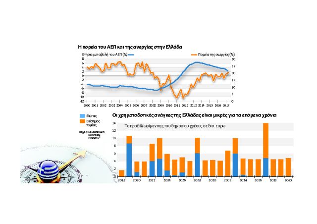 «Για πρώτη φορά εδώ και πολύ καιρό τα πολιτικά κίνητρα μεταξύ της Ελλάδας και των ευρωπαίων δανειστών δείχνουν πάντως ευθυγραμμισμένα» παρατηρούσαν ο στρατηγικός αναλυτής George Saravelos και ο επικεφαλής οικονομολόγος για την Ευρώπη Mark Wall της Deutsche Bank, οι οποίοι «βλέπουν φως στην άκρη του τούνελ» για τη χώρα μας όσον αφορά την επόμενη μέρα μετά τον Αύγουστο του 2018. Αυτό προϋποθέτει την πλήρη εκταμίευση των υπολοίπων δανείων στο πλαίσιο του προγράμματος του ESM, έναν μειωμένο ρόλο για το ΔΝΤ, περιορισμένη υπό όρους και σταδιακή ελάφρυνση του χρέους και μια δυνητικά λιγότερο επιθετική δημοσιονομική προσαρμογή, αλλά κύριος μια συμφωνία για την επιτυχή διαχείριση της εξόδου από το πρόγραμμα.