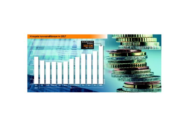 Τραπεζικές πηγές εκτιμούν ότι το 2017 θα κλείσει με αύξηση των υπολοίπων κατά 5 δισ. ευρώ, στα επίπεδα των 125-126 δισ. ευρώ. Στο δεκάμηνο Ιανουαρίου-Οκτωβρίου οι καθαρές εισροές διαμορφώθηκαν στα 2,3 δισ. ευρώ περίπου, με βάση τα στοιχεία που έχει δώσει στη δημοσιότητα η Τράπεζα της Ελλάδος.