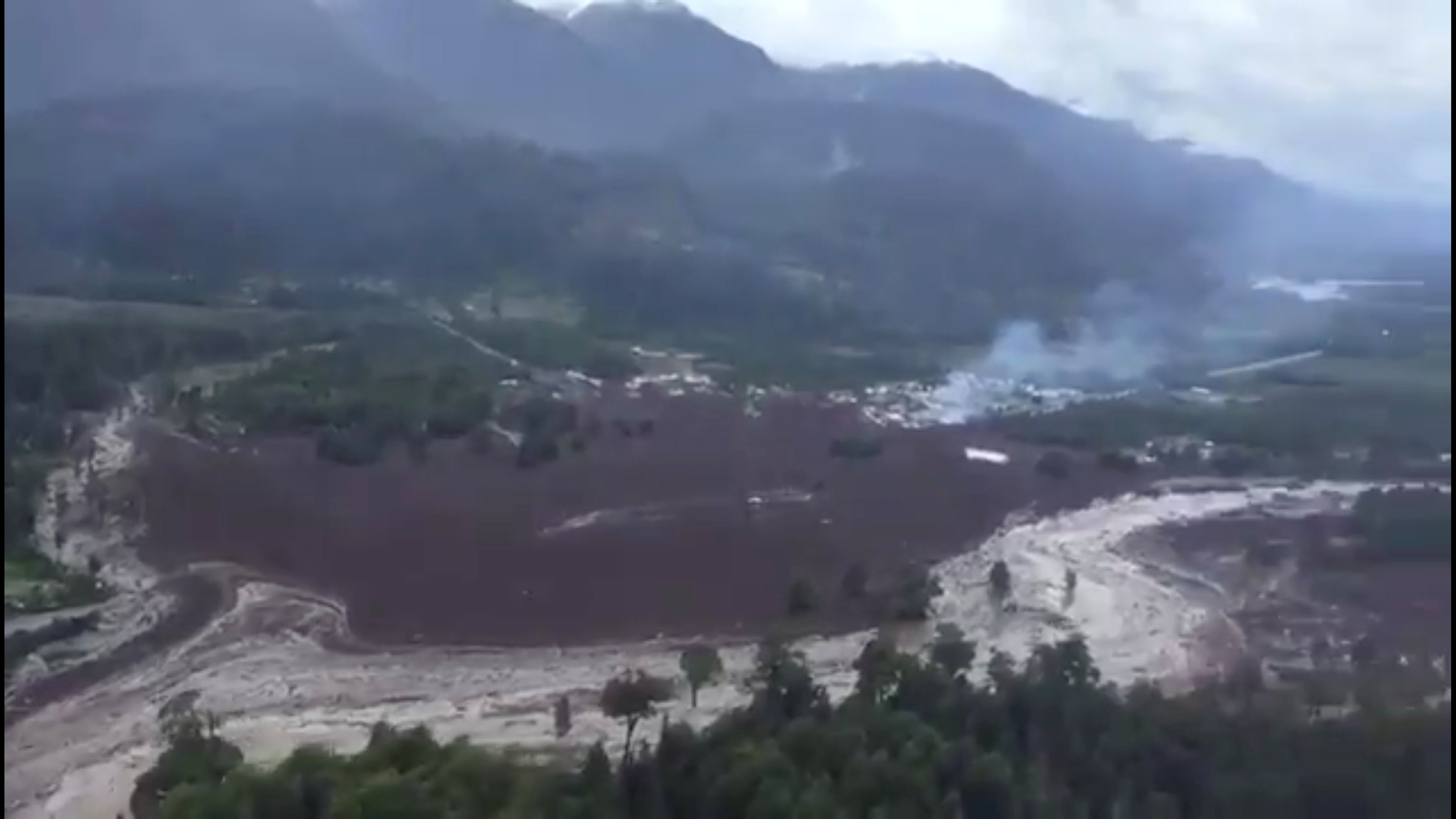 Πλάνα που μαγνητοσκοπήθηκαν από ελικόπτερο της αστυνομίας εικονίζουν μια τεράστια έκταση στο απομακρυσμένο χωριό Βίγια Σάντα Λουσία, κοντά στο Τσαϊτέν, στο παράκτιο τμήμα της Παταγονίας, να έχει θαφτεί κάτω από τη λάσπη, καθώς η κατολίσθηση το έπληξε κατεβαίνοντας από μια κοιλάδα που είχε πλημμυρίσει όταν υπερχείλισε ένα ρέμα.