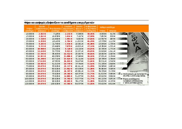 Φόρους και ασφαλιστικές εισφορές που φθάνουν ή και ξεπερνούν το μισό ετήσιο εισόδημά τους καλούνται να πληρώσουν οι συνεπείς ελεύθεροι επαγγελματίες, οι οποίοι εμφανίζουν στην Εφορία εισοδήματα που σε ορισμένες περιπτώσεις κυμαίνονται στα όρια της φτώχειας.