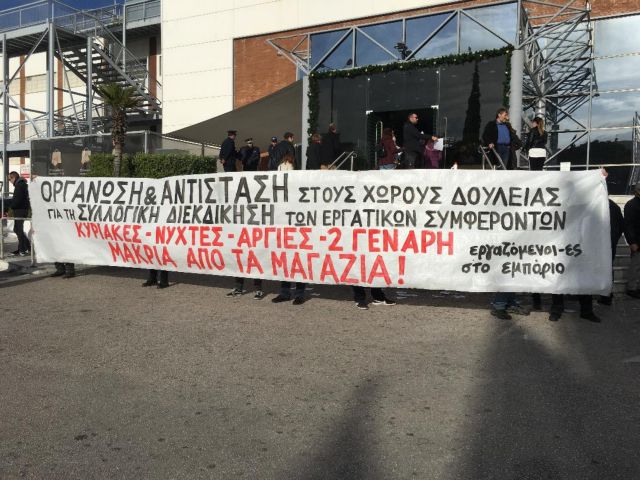 Συγκέντρωση διαμαρτυρίας έξω από εκπτωτικό πολυκατάστημα στην οδό Πειραιώς στον Ρέντη έχουν ξεκινήσει από τις 10 το πρωί εργατικές συλλογικότητες και σωματεία μετά από τις καταγγελίες εργαζομένων ότι η συγκεκριμένη επιχείρηση θα λειτουργήσει κανονικά σήμερα 2 Ιανουαρίου.