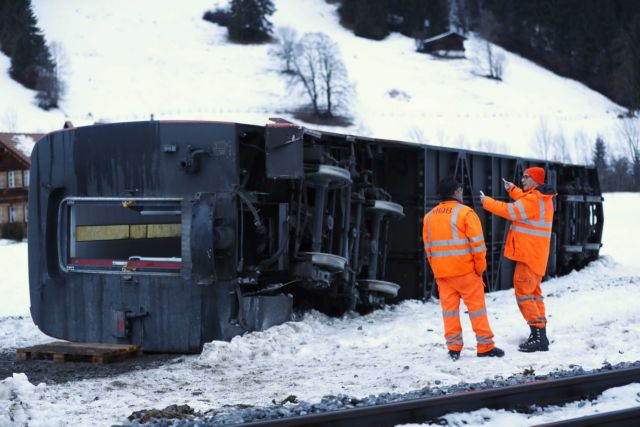 Θυελλώδεις άνεμοι παρέσυραν τρένο, εκτροχιάζοντάς το, με αποτέλεσμα να τραυματιστούν οκτώ άνθρωποι, στην Ελβετία που πλήττεται από πρωτοφανή καταιγίδα.