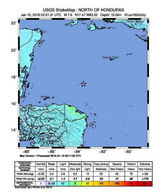 Ο σεισμός σημειώθηκε τη νύχτα της Τρίτης προς Τετάρτη, στις 04:51 (ώρα Ελλάδας) σε μια θαλάσσια περιοχή μεταξύ του Μπελίζ και της Κούβας, σε ιδιαίτερα μικρό βάθος 10 χιλιομέτρων, σύμφωνα με το Γεωλογικό Ινστιτούτο των ΗΠΑ (USGS).