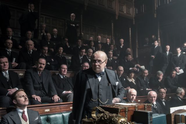 «Είναι ένας άντρας, όπως όλοι» λέει στην αρχή της ταινίας του Τζο Ράιτ «Η πιο σκοτεινή ώρα» («Darkest hour», Αγγλία, 2017) η Κλημεντίνη Τσόρτσιλ (Κριστίν Σκοτ Τόμας) αναφερόμενη στον σύζυγό της Ουίνστον (Γκάρι Ολντμαν). Δεν είχε άδικο βέβαια, οι καθημερινές συνήθειες του Τσόρτσιλ, η ζωή του στο σπίτι, οι ατελείωτες ώρες στο… μπάνιο, δεν ήταν και το πιο αξιοζήλευτο πράγμα του κόσμου. Ομως τι άνδρας! Τι οξύ μυαλό, τι πνευματώδες χιούμορ, τι πολιτικοί ελιγμοί, τι σθένος, τι κουράγιο, τι αντοχές, τι πατριωτισμός, τι φιλοσοφία για τη ζωή! Πόσο χαρισματικός ομιλητής! Μα και τι ερμηνεία από τον ηθοποιό που εδώ τον υποδύεται!