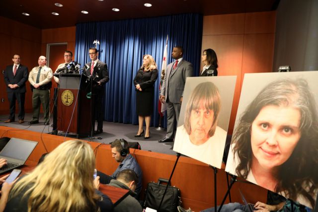 Βαρύτατες κατηγορίες για την αιχμαλωσία των 13 παιδιών του αντιμετωπίζει το ζευγάρι από την Καλιφόρνια, που φέρεται να τα κρατούσε φυλακισμένα στο σπίτι της οικογένειας στην κωμόπολη Πέρις.
