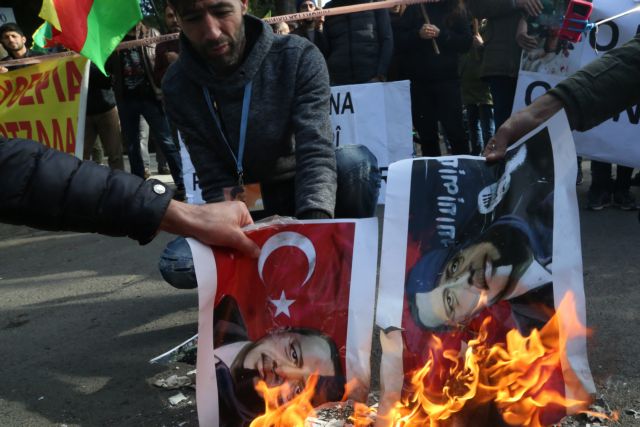 Με σύνθημα «η ψυχή του Κομπάνι οδηγός για το Αφρίν» Κούρδοι διαδηλωτές πραγματοποίησαν πορεία στο κέντρο της Αθήνας με αφορμή την επιδρομή του τουρκικού στρατού στο Αφρίν.