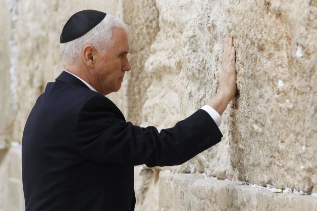 Ο αντιπρόεδρος των ΗΠΑ μετέβη επίσης στο Τείχος των Δακρύων στην Ιερουσαλήμ, έναν ιερό τόπο για τον ιουδαϊσμό, όπως είχε κάνει πριν από αυτόν ο Ντόναλντ Τραμπ τον περασμένο Μάιο.
