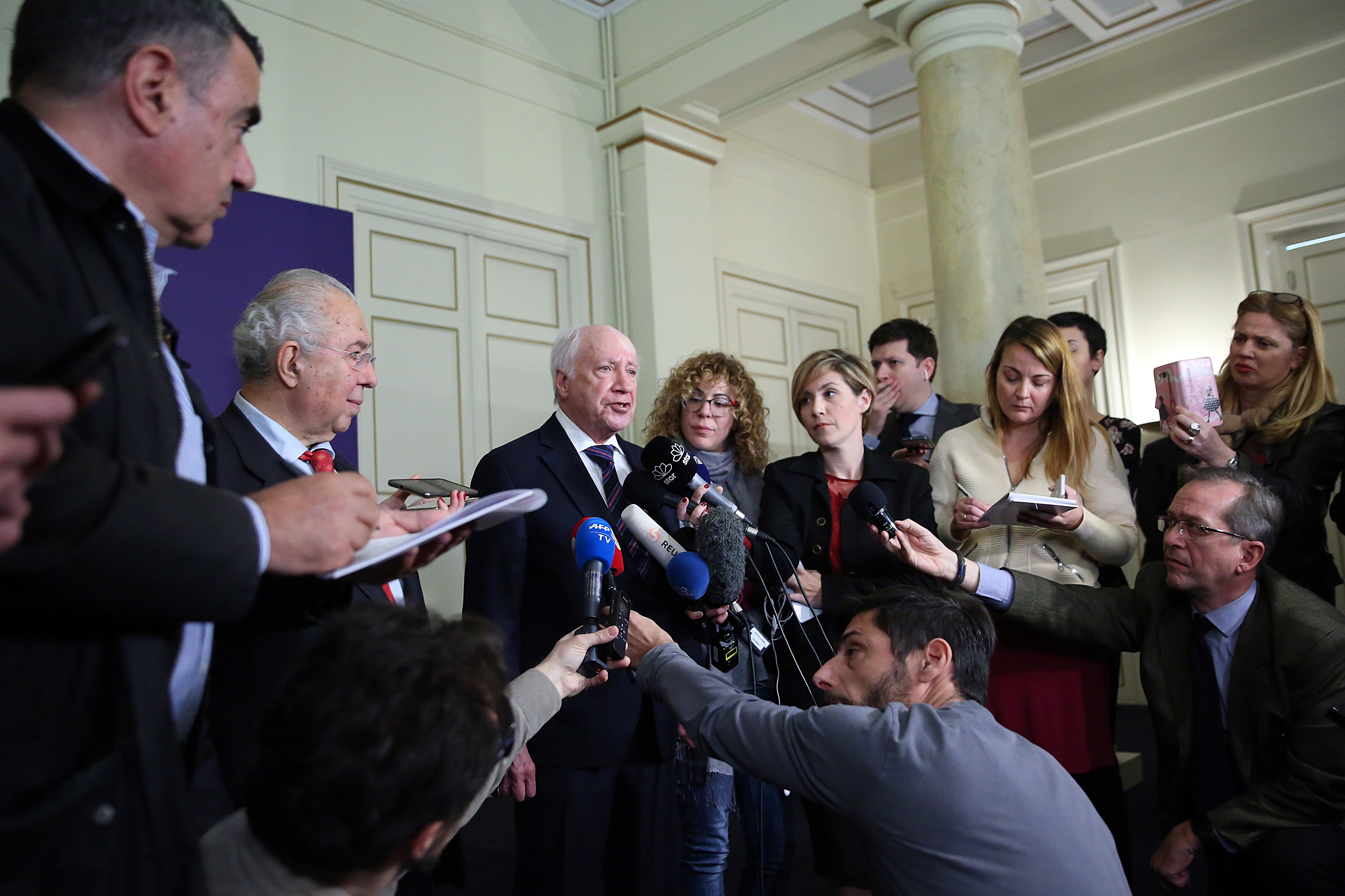 Απαντώντας σε ερωτήσεις δημοσιογράφων, εξήγησε ότι έχει δώσει κάποιες ιδέες και στις δύο κυβερνήσεις, αλλά αρνήθηκε να αναφερθεί σε αυτές.