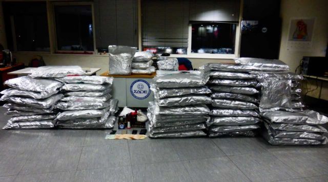 Όπως ανακοίνωσε το ΣΔΟΕ, με κατάλληλη αξιοποίηση πληροφοριών, ενδελεχή έρευνα και διασταύρωση στοιχείων και μετά από οργανωμένη επιχείρηση συνελήφθησαν στον συγκεκριμένο χώρο δύο άτομα, ένας ημεδαπός και ένας Αλβανός, 30 και 38 ετών αντίστοιχα. Με τη συνδρομή του σκύλου ανιχνευτή ναρκωτικών της Υπηρεσίας «ROCKY» εντοπίστηκε και κατασχέθηκε ποσότητα 407 κιλών και 640 γραμμαρίων ακατέργαστης κάνναβης. Αυτήν την ποσότητα οι συλληφθέντες είχαν αποκρύψει εντός σάκων ρυζιού, που είχαν τοποθετήσει σε παλέτες με σκοπό να αποσταλούν στην Ολλανδία.