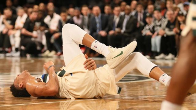 Ο «Greek Freak» έδειξε να πονάει, έστω κι αν κατάφερε να σηκωθεί και να φτάσει χωρίς βοήθεια μέχρι τον πάγκο των «ελαφιών», όπου το ιατρικό τιμ της ομάδας του Μιλγουόκι του παρείχε τις πρώτες βοήθειες.