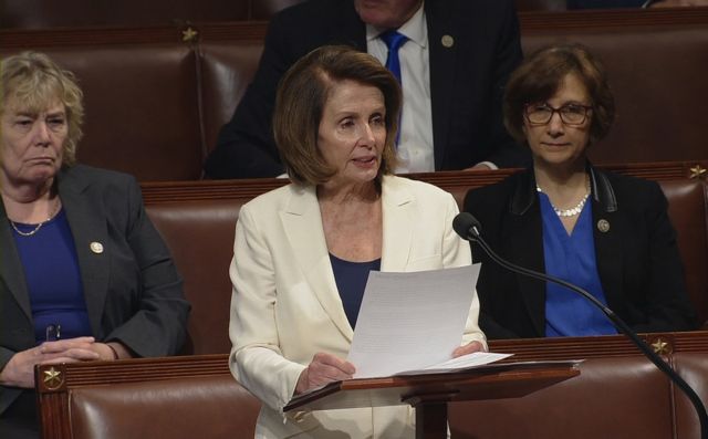 Ως επικεφαλής της ομάδας των Δημοκρατικών στη Βουλή των Αντιπροσώπων, η Νάνσι Πελόζι έχει το δικαίωμα βάσει του κανονισμού του σώματος να μιλά για όσο χρόνο επιθυμεί. Αντίθετα στη Γερουσία υπάρχει χρονικό περιθώριο για τις ομιλίες.