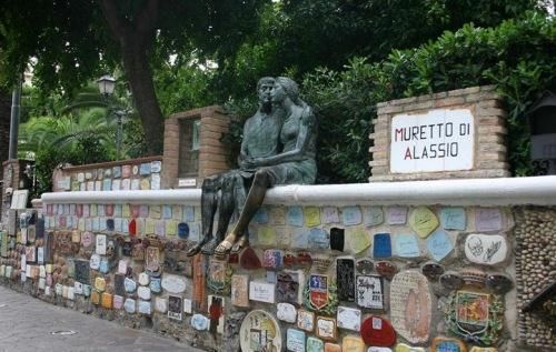 Είναι σαν ένα τεράστιο άλμπουμ με αυτόγραφα προσωπικοτήτων. Ένας τοίχος κατά μήκος της μιας πλευράς του δρόμου Corso Dante Alighieri, στην πόλη Αλάσιο, στη Λιγουρία της Ιταλίας.
