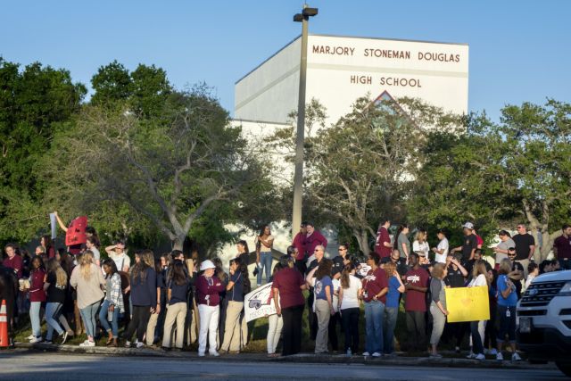 Το κλίμα ήταν βαρύ καθώς σχεδόν 3.000 έφηβοι περνούσαν δίπλα από τους εκατοντάδες αστυνομικούς, που είχαν αναπτυχθεί στο σχολικό συγκρότημα, για να επιστρέψουν στις τάξεις τους στο σχολείο του Πάρκλαντ, συνοικίας στο Φορτ Λοντερντέιλ.