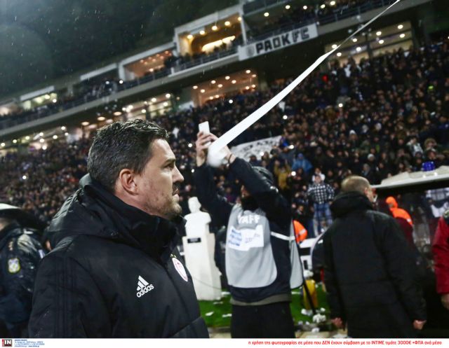 του Ολυμπιακού, ενώ φαίνεται ξεκάθαρα ότι ο οπαδός του ΠΑΟΚ σημαδεύει