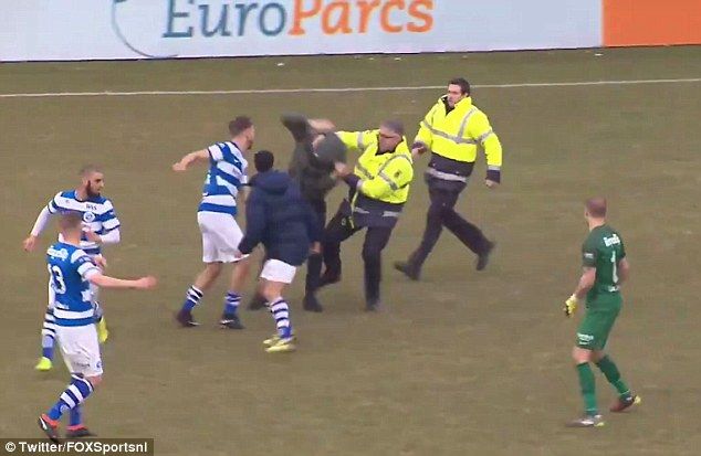Οπαδοί της Γκο Αχέντ εισέβαλαν στον αγωνιστικό χώρο και προσπάθησαν να επιτεθούν στους παίκτες της Ντε Γκράαφσαπ, μετά το τέλος του αγώνα για τη Β’ κατηγορία Ολλανδίας.