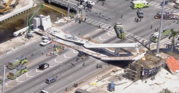 Η πεζογέφυρα αυτή βάρους 950 τόνων αποσκοπούσε να συνδέσει το Διεθνές Πανεπιστήμιο της Φλόριντα με τις εστίες των φοιτητών. Τουλάχιστον 8 αυτοκίνητα παγιδεύτηκαν κάτω από τα ερείπια της πεζογέφυρας, η οποία κατέρρευσε χθες το βράδυ πάνω σε έναν αυτοκινητόδρομο έξι λωρίδων.