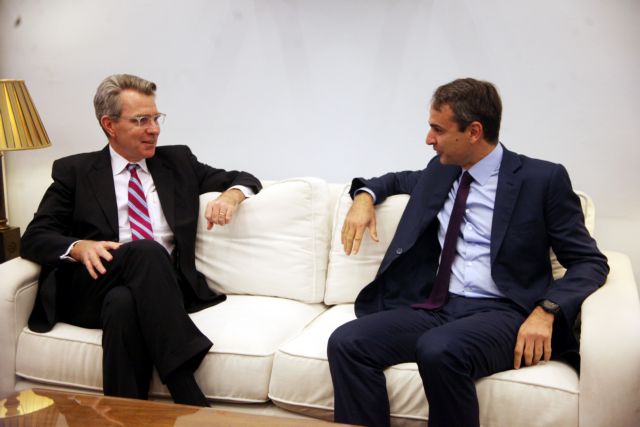 Θέμα άμεσης απελευθέρωσης των δύο ελλήνων στρατιωτικών, που κρατούνται στις τουρκικές φυλακές έθεσε την Τετάρτη ο πρόεδρος της Νέας Δημοκρατίας Κυριάκος Μητσοτάκης κατά τη συνάντηση που είχε, στο γραφείο του στη Βουλή, με τον πρέσβη των ΗΠΑ στην Αθήνα Τζέφρι Πάιατ, κατόπιν αιτήματος του δεύτερου.