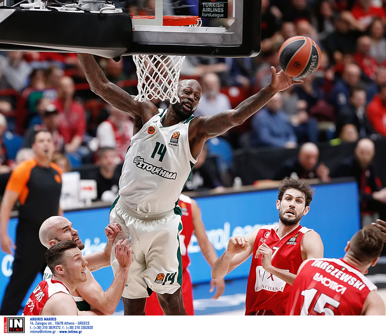 Οι «πράσινοι» πέρασαν νικηφόρα με 96-95 στην παράταση από το Μιλάνο, απέναντι στην αδιάφορη Αρμάνι, για την 30ή και τελευταία αγωνιστική της κανονικής περιόδου, και πλέον με ήττα του Ολυμπιακού στο ΣΕΦ από τη Ζαλγκίρις Κάουνας «αναρριχάται» στην 4η θέση και αντιμετωπίζει με πλεονέκτημα έδρας την 5η Ρεάλ Μαδρίτης! Αυτό μπορεί να συμβεί ακόμη και με νίκη του Ολυμπιακού επί της Ζαλγκίρις και ήττα της «Βασίλισσας» από την Μπάμπεργκ στη Μαδρίτη.