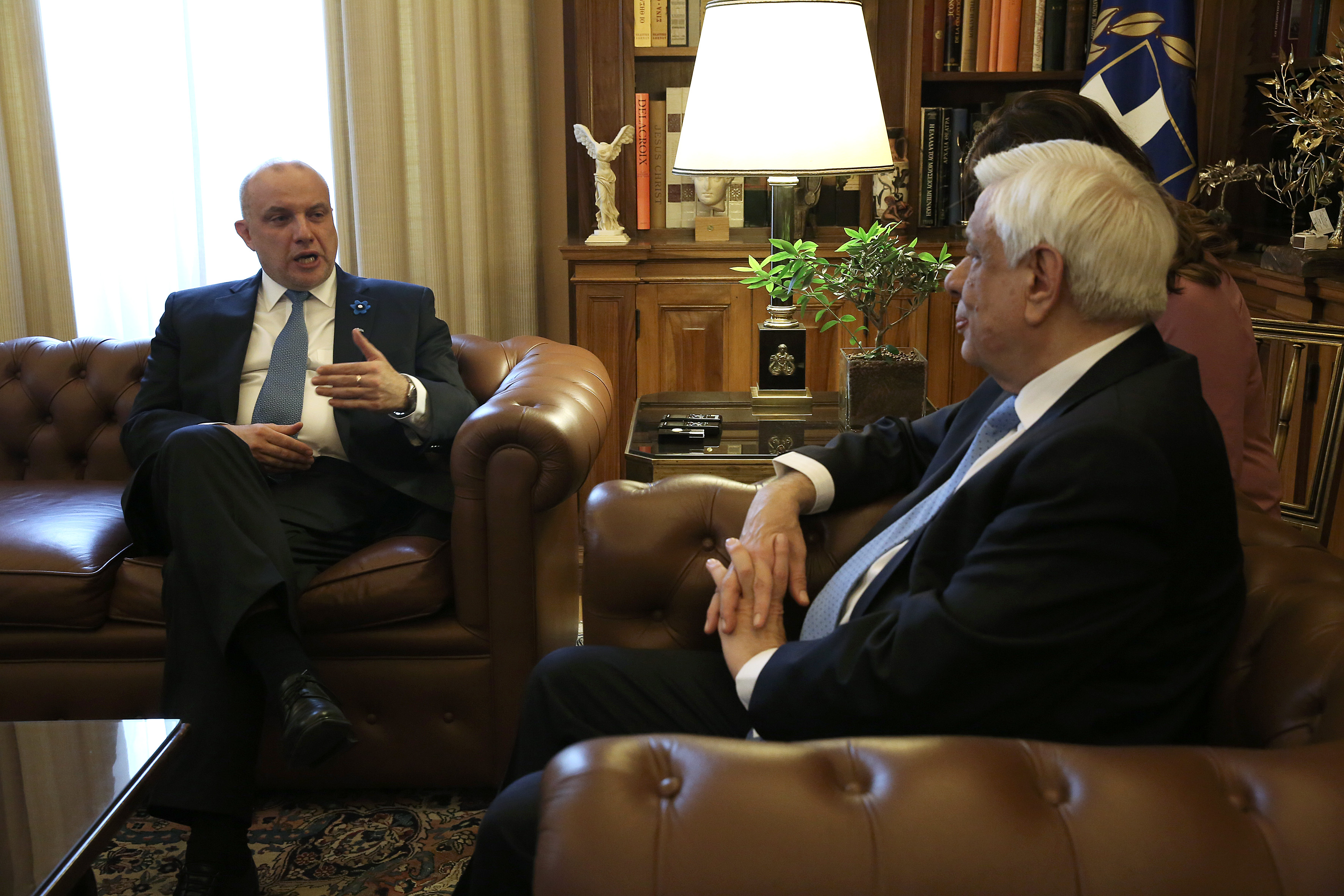 Από την πλευρά του, ο υπουργός Άμυνας της Εσθονίας, αφού ευχαρίστησε τον Πρόεδρο της Ελληνικής Δημοκρατίας για τη θερμή υποδοχή, επισήμανε το άριστο κλίμα στις σχέσεις μεταξύ των δυο χωρών και στάθηκε ιδιαίτερα στα θέματα ασφάλειας, αλλά και στις προκλήσεις που καλείται να αντιμετωπίσει η χώρα του και ιδίως αναφορικά με τη Ρωσία.