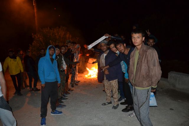 Οι μετανάστες που πλέον είναι στην πλατεία περισσότεροι από τις άλλες μέρες, αφού σε ενίσχυση των όσων βρισκόταν εκεί κατέβηκαν και άλλοι από τον καταυλισμό της Μόριας, σχημάτισαν τριπλές κυκλικές ανθρώπινες αλυσίδες προκειμένου να αμυνθούν, ενώ έβαλαν στο κέντρο τους γυναίκες και παιδιά που συμμετέχουν στην κινητοποίηση.