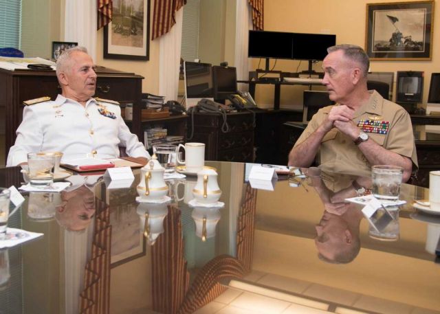Οι παραβιάσεις του εθνικού εναέριου χώρου της Ελλάδας από την Τουρκία στο Αιγαίο, το προσφυγικό, αλλά και η στρατηγική σημασία των υποδομών της Σούδας βρέθηκαν στο επίκεντρο της συζήτησης που είχε την Τρίτη ο Αρχηγός ΓΕΕΘΑ, Ναύαρχος Ευάγγελος Αποστολάκης κατά τη συνάντησή του στην Ουάσινγκτον με τον Αρχηγό των Ενόπλων Δυνάμεων (ΕΔ) των ΗΠΑ, Chairman of the Joint Chiefs of Staff, General Joseph F. Dunford US Marine Corps, η οποία πραγματοποιήθηκε στον απόηχo της συμφωνίας Ελλάδας – ΗΠΑ για την αναβάθμιση των 85 F-16.