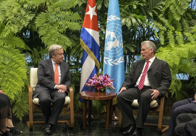 Ο γενικός γραμματέας του ΟΗΕΑντόνιο Γκουτέρες συναντήθηκε τη Δευτέρα με τον νέο πρόεδρο της Κούβας Μιγκέλ Ντίας-Κανέλ, κατά τη διάρκεια της επίσημης επίσκεψής του στη νήσο στο πλαίσιο της οποίας συμμετέχει στη διετή σύνοδο της Οικονομικής Επιτροπής για τη Λατινική Αμερική και την Καραϊβική CEPAL), η οποία διεξάγεται στην Αβάνα.