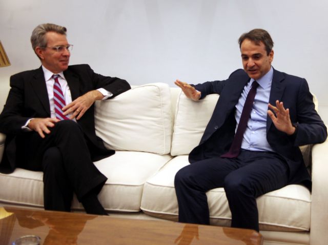 Συναντήσεις με τον αμερικανό πρεσβευτή, Τζέφρυ Πάιατ, και τον Γιώργο Παπανδρέου είχε στο γραφείο του στην Βουλή, ο πρόεδρος της ΝΔ, Κυριάκος Μητσοτάκης.