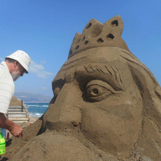 Ένα χταπόδι που σφίγγει στα πλοκάμια του πλαστικά μπουκάλια, μια γοργόνα που αναδύεται από το βυθό παρασέρνοντας ελαστικά αυτοκινήτων, ένας βαρκάρης που ψαρεύει σκουπίδια εμφανίστηκαν (μεταξύ άλλων έργων) πέρυσι. Και τις δύο χρονιές (2016 και 2017) το φεστιβάλ γλυπτικής στην άμμο ολοκληρώθηκε υπό την αιγίδα του ΕΟΤ και του δήμου Μαλεβιζίου, με την υποστήριξη της Περιφέρειας Κρήτης ενώ υπεύθυνοι της διοργάνωσης ήταν ο σύλλογος γυναικών του δήμου Μαλεβιζίου «Η Μέλισσα» σε συνεργασία με τον γλύπτη Μανώλη Χαρκούτση.