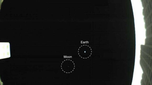 Κατά τη διαδικασία αυτή ενεργοποιήθηκαν και οι κάμερες τους και η κάμερα του ενός κάποια στιγμή τράβηξε μια φωτογραφία στο βάθος της οποίας διακρίνονταν δύο κουκκίδες οι οποίες δεν ήταν τίποτε άλλο από την Γη και την Σελήνη.