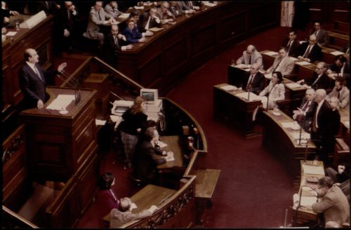 Στις 27 Μαρτίου 1993 είχαμε την πρόταση δυσπιστίας κατά της κυβέρνησης του Κωνσταντίνου Μητσοτάκη για το Σκοπιανό. Για την ακρίβεια, υπήρξε αίτημα ενημέρωσης της Βουλής από τον πρωθυπουργό για τις εξελίξεις στο θέμα (σύμφωνα με το άρθρο 142Α του Κανονισμού της Βουλής), το οποίο μετατράπηκε από τους βουλευτές του ΠαΣοΚ σε πρόταση δυσπιστίας και η συζήτηση ξεκίνησε αμέσως.