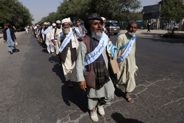 Εκατοντάδες Αφγανοί έφτασαν εξαντλημένοι σήμερα Δευτέρα στην Καμπούλ αφού διέσχισαν στη διάρκεια του ιερού μήνα του Ραμαζανιού τη χώρα με αίτημα την ειρήνη με τους Ταλιμπάν.