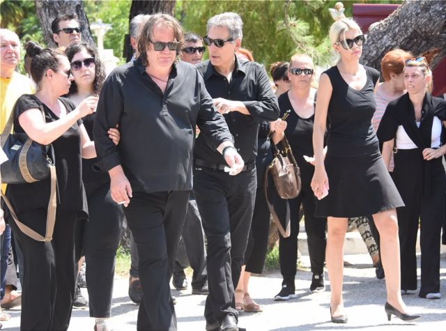 Συγκλονισμένοι ο γιος της Γιώργος Καληώρας, ο σύζυγος της Γιάννης Μανιός και ο πρώην άνδρας της Θάνος Καληώρας, αλλά και η στενή της φίλη Βάσια Τριφύλλη.