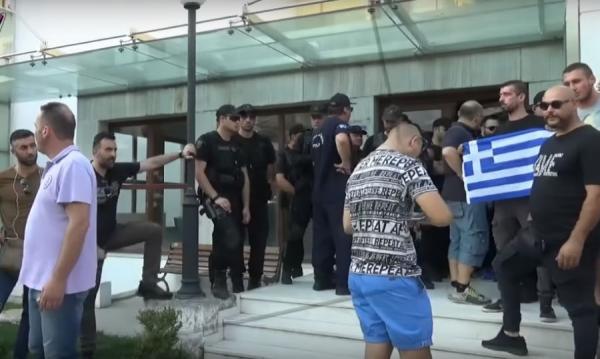 Πολίτες που είχαν συγκεντρωθεί από νωρίς,αποδοκίμασαντον γενικό γραμματέα του υπουργείου εσωτερικών, διαμαρτυρόμενοι για την συμφωνία με την ΠΓΔΜ.