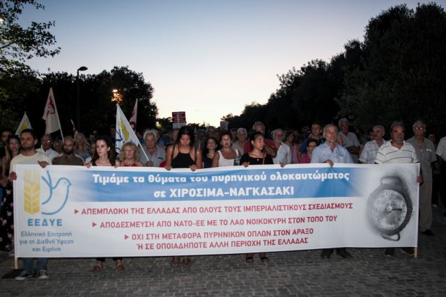 Πορείες για τη συμπλήρωση 73 χρόνων από τη ρίψη ατομικής βόμβας στη Χιροσίμα και στο Ναγκασάκι πραγματοποιήθηκαν σε κεντρικούς δρόμους της Αθήνας και της Θεσσαλονίκης, από τα μέλη της ελληνικής επιτροπής για τη Διεθνή Ύφεση και την Ειρήνη.