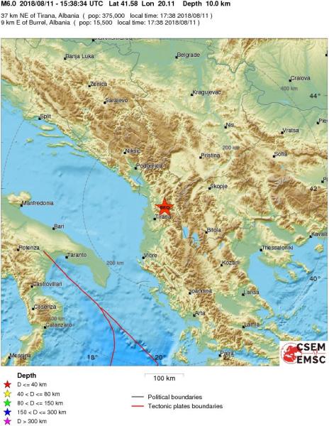 Σύμφωνα με το Ευρωμεσογειακό Σεισμολογικό Κέντρο, το επίκεντρο του σεισμού εντοπίζεται 40 χιλιόμετρα βορειοανατολικά της πρωτεύουσας της Αλβανίας, με το εστιακό βάθος να εκτιμάται στα δέκα χιλιόμετρα.