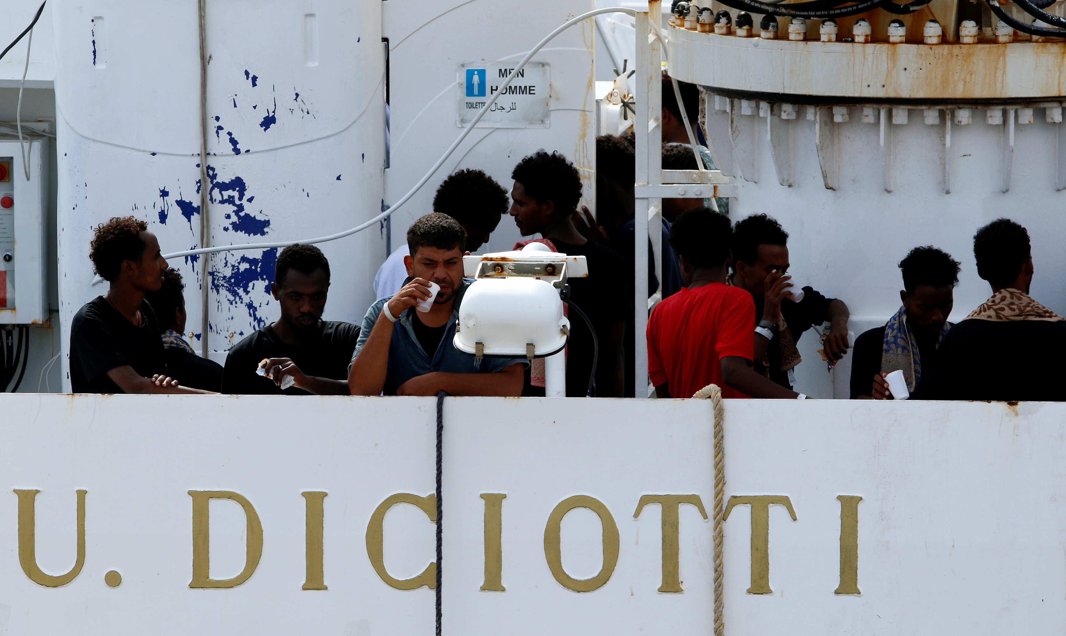 Περίπου 150 ενήλικες μετανάστες παραμένουν στο πλοίο της ιταλικής ακτοφυλακής Diciotti που έφθασε στο λιμάνι της Κατάνης τη Δευτέρα. Η Ιταλία επιμένει πως άλλες χώρες της ΕΕ πρέπει να μοιραστούν μεταξύ τους τούς μετανάστες.