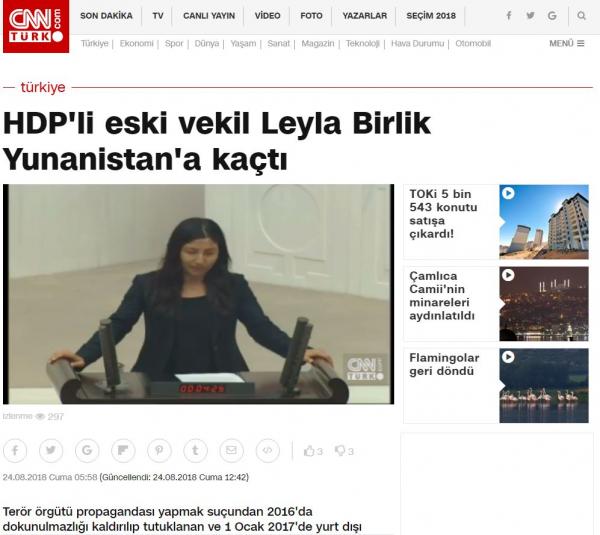 Μια ακόμα αφορμή φαίνεται για όξυνση της επιθετικής ρητορικής εναντίον της Ελλάδας, από τα τουρκικά ΜΜΕ, που πρόσκεινται στον τούρκο πρόεδρο Ρετζέπ Ταγίπ Ερντογάν φαίνεται ότι αποτελεί η διαφυγή της πρώην βουλευτή του φιλοκουρδικού κόμματος HDP Λεϊλά Μπιρλίκ στην Αλεξανδρούπολη, η οποία τέθηκε υπό κράτηση και φέρεται να ζήτησε άσυλο από τις ελληνικές αρχές.