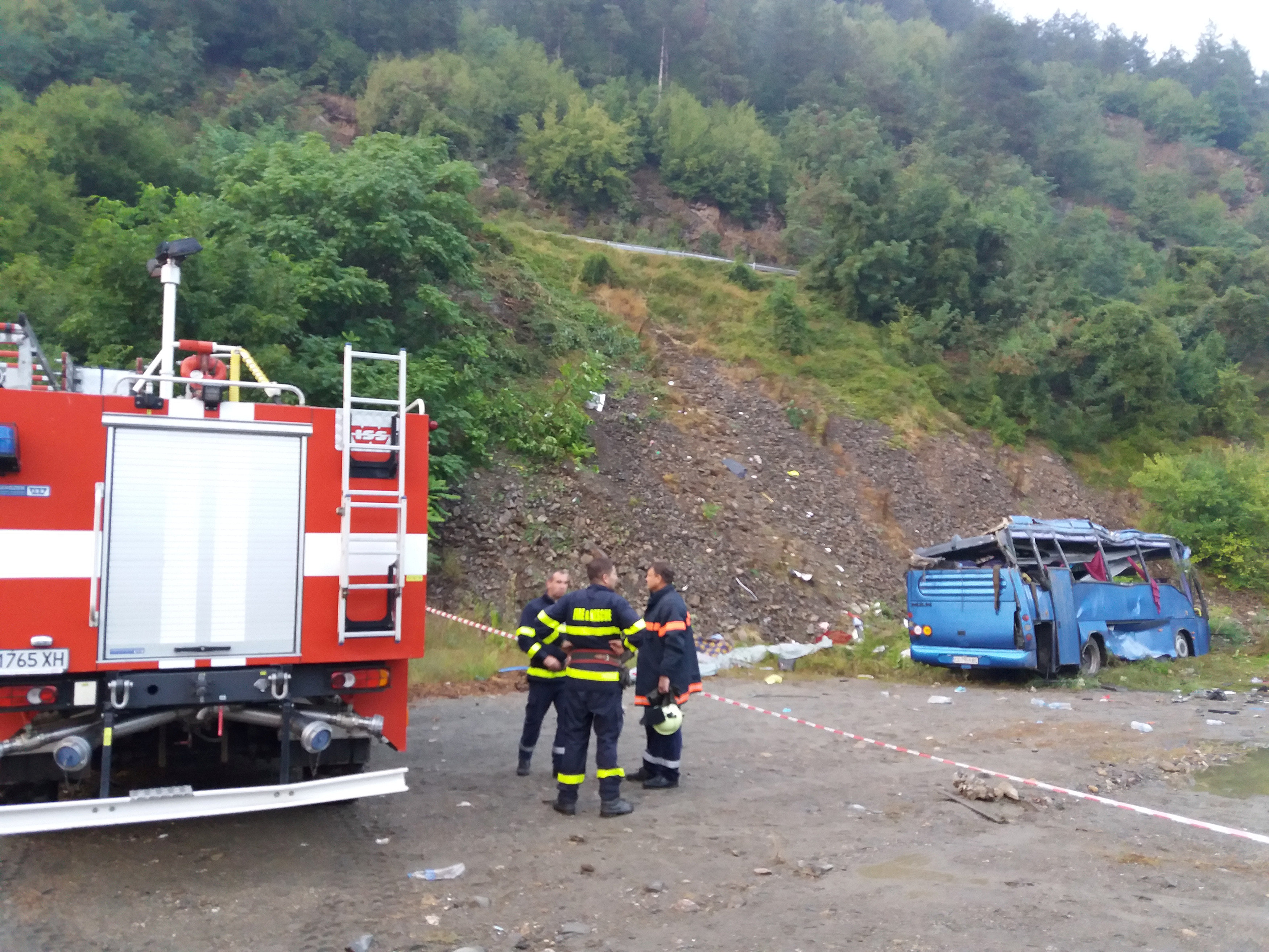 Υπό καταρρακτώδη βροχή, λεωφορείο που μετέφερε βούλγαρους τουρίστες μετά την επίσκεψή τους σε ένα μοναστήρι συγκρούστηκε με άλλα αυτοκίνητα, βγήκε από τον δρόμο κι ανατράπηκε καταλήγοντας στην όχθη του Ίσκαρ, ενός ποταμού της περιοχής.