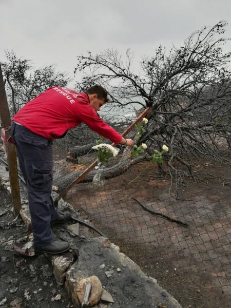Λίγα λουλούδια για τους νεκρούςΑυτή την φορά όμως αισθανθήκαμε αναγκαίο, πέρα από την παροχή υλικών αγαθών στους συνανθρώπους μας που προσπαθούν να συνεχίσουν τις ζωές τους μέσα κυριολεκτικά από τα αποκαΐδια, να αποδώσουμε έναν ελάχιστο φόρο τιμής στην μνήμη όλων αυτών που χάθηκαν άδικα».