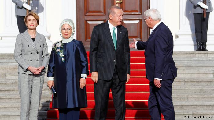 Το πρωί της Παρασκευής ο τούρκος πρόεδρος Ερντογάν έγινε δεκτός από τον γερμανό πρόεδρο της Δημοκρατίας Σταϊνμάιερ. Το μεσημέρι η πρώτη συνάντηση με τη γερμανίδα καγκελάριο Μέρκελ.Λίγο πριν ξεκινήσουν οι επίσημες επαφές του Ερντογάν στο Βερολίνο ο γερμανός υπουργός Εξωτερικών Χάικο Μάας κάλεσε την Τουρκία να συμβάλει στην εξομάλυνση των διμερών σχέσεων κάνοντας μεγαλύτερες προσπάθειες στο πεδίο του κράτους δικαίου και της ελευθερίας του Τύπου. «Εάν θέλουν να έχουν μια ευρωπαϊκή προοπτική στην Τουρκία, τότε θα πρέπει να ασχοληθούν με τα ζητήματα του κράτους δικαίου, της ελευθερίας του Τύπου και της έκφρασης», επισήμανε ο επικεφαλής της γερμανικής διπλωματίας στο περιθώριο της Γενικής Συνέλευσης του ΟΗΕ στη Νέα Υόρκη.
