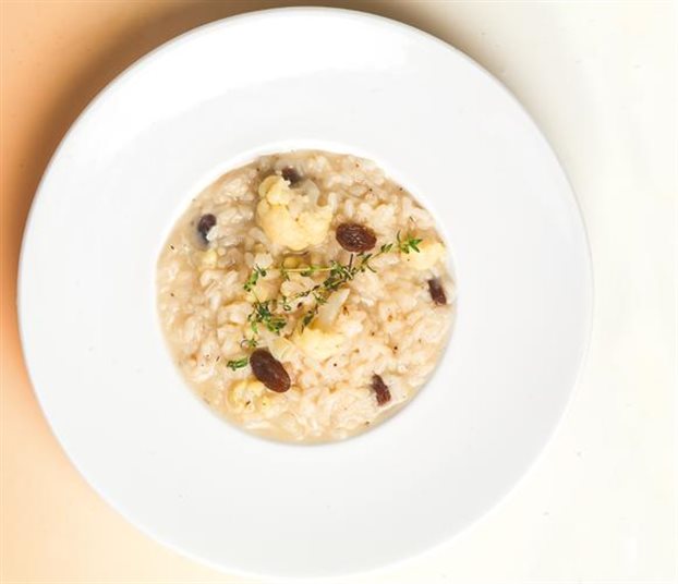 - Επειτα από 10 λεπτά, προσθέτουµε το κουνουπίδι και τη σελινόριζα, αλατίζουµε και συνεχίζουµε το µαγείρεµα µε τον ίδιο τρόπο, µέχρις ότου το ρύζι γίνει al dente. Αποσύρουµε την κατσαρόλα από τη φωτιά και προσθέτουµε τις σταφίδες, το θυµάρι, την παρµεζάνα και το βούτυρο. Σκεπάζουµε την κατσαρόλα και «ξεκουράζουµε» το ριζότο για 2-3 λεπτά.